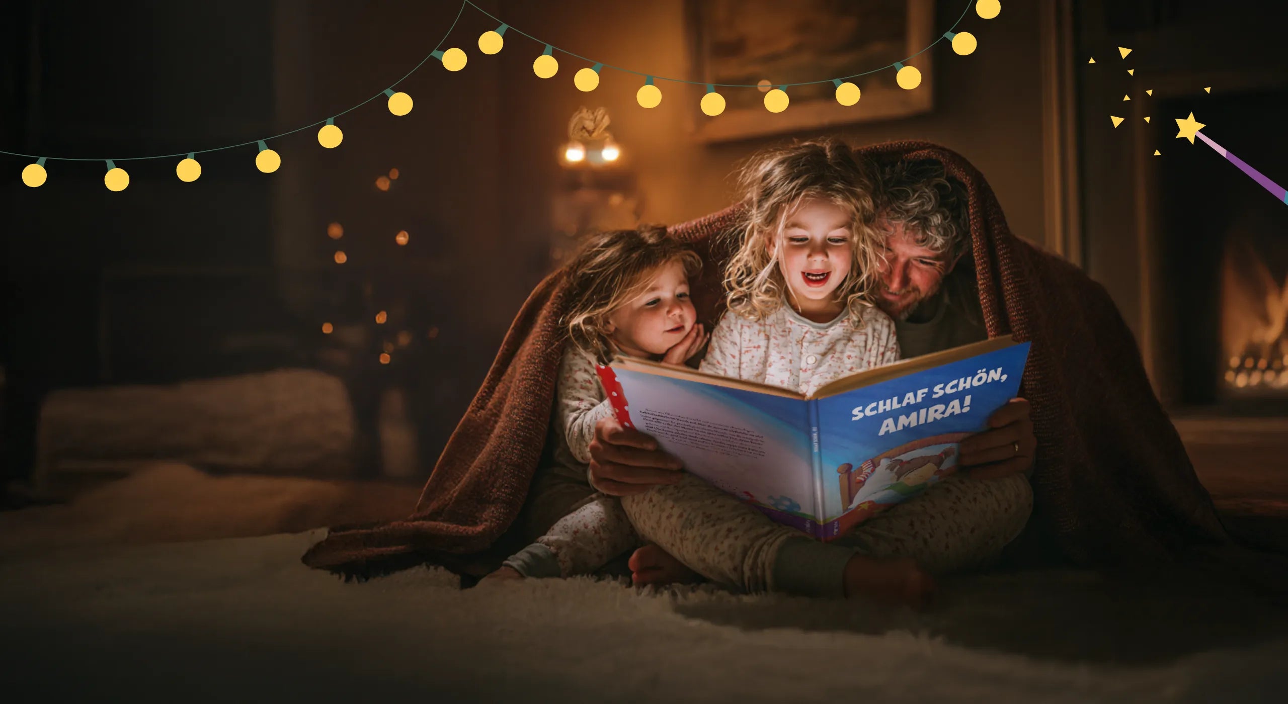 In den personalisierten Geschichten kannst du jede Menge Details anpassen: Den Namen, das Aussehen, das Zuhause, die Hobbys, das Lieblingsessen und noch so viel mehr! Gestalte jetzt dein ganz persönliches Buch für magische Lesemomente. Und so geht’s: Geschichte auswählen, Details anpassen und schon wirst du zum Helden in deinem eigenen Kinderbuch!