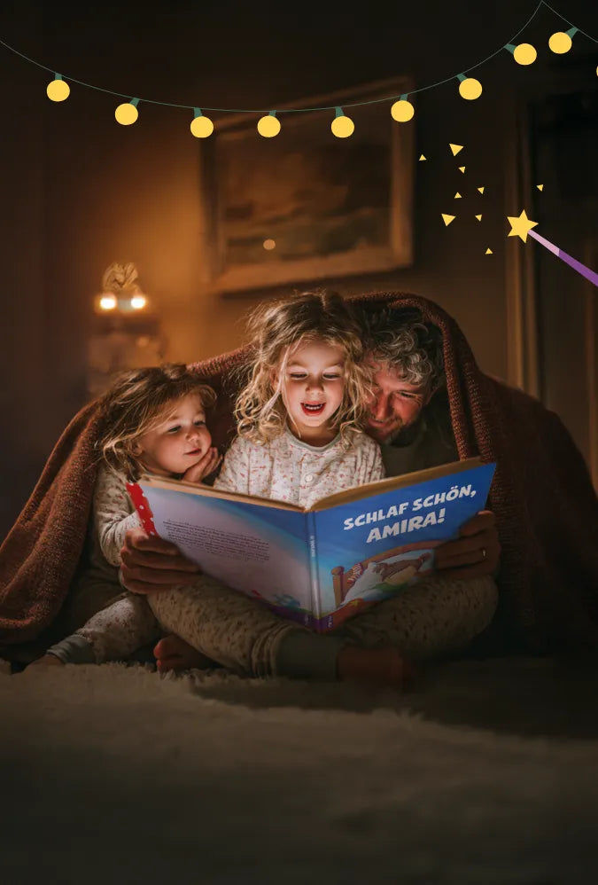 In den personalisierten Geschichten kannst du jede Menge Details anpassen: Den Namen, das Aussehen, das Zuhause, die Hobbys, das Lieblingsessen und noch so viel mehr! Gestalte jetzt dein ganz persönliches Buch für magische Lesemomente. Und so geht’s: Geschichte auswählen, Details anpassen und schon wirst du zum Helden in deinem eigenen Kinderbuch!